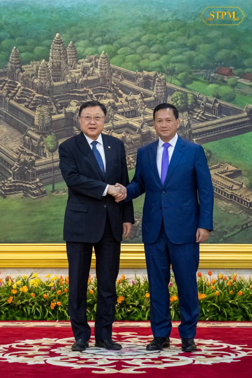 សម្ដេចមហាបវរធិបតី ហ៊ុន ម៉ាណែត នាយករដ្ឋមន្ត្រី នៃព្រះរាជាណាចក្រកម្ពុជា បានជួបពិភាក្សាការងារជាមួយលោក វ៉ាង តុងចូវ (Wang Tongzhou) ប្រធានក្រុមហ៊ុន China Communications Construction Company (CCCC) នាថ្ងៃទី១៨ខែមេសាឆ្នាំ២០២៥ នៅវិមានសន្តិភាព ។