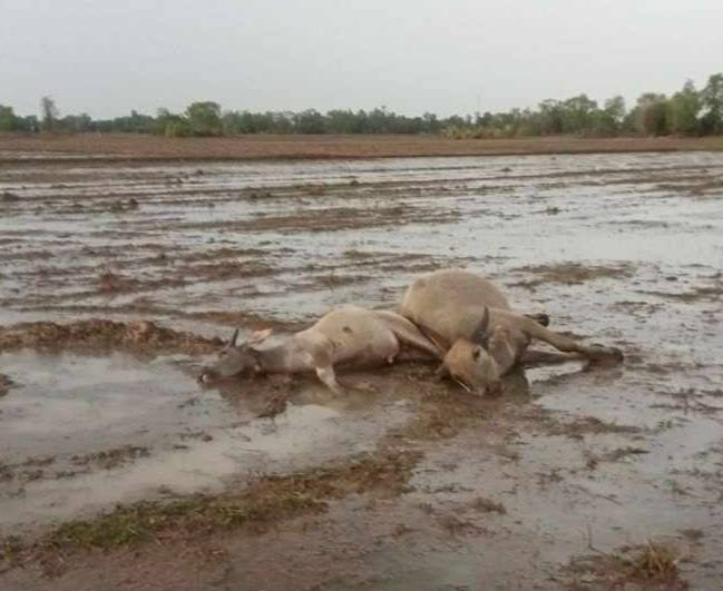 ស្វាយរៀង ៖ ក្របី ២ក្បាលដើរស៊ីស្មៅ ខណៈមេឃងងឹតធ្លាក់ភ្លៀងរលឹម លាយឡំផ្គរគ្រហឹម រន្ទះបាញ់ចំសត្វក្របីងាប់អស់០២ក្បាល នៅកណ្តាលវាលស្រែ នាវេលាម៉ោ៤និង១០នាទីរសៀលថ្ងៃទី១៩ ខែឧសភា ឆ្នាំ២០២៥ នៅភូមិបុសស្វាយ ឃុំបុសមន ស្រុករំដួល ។