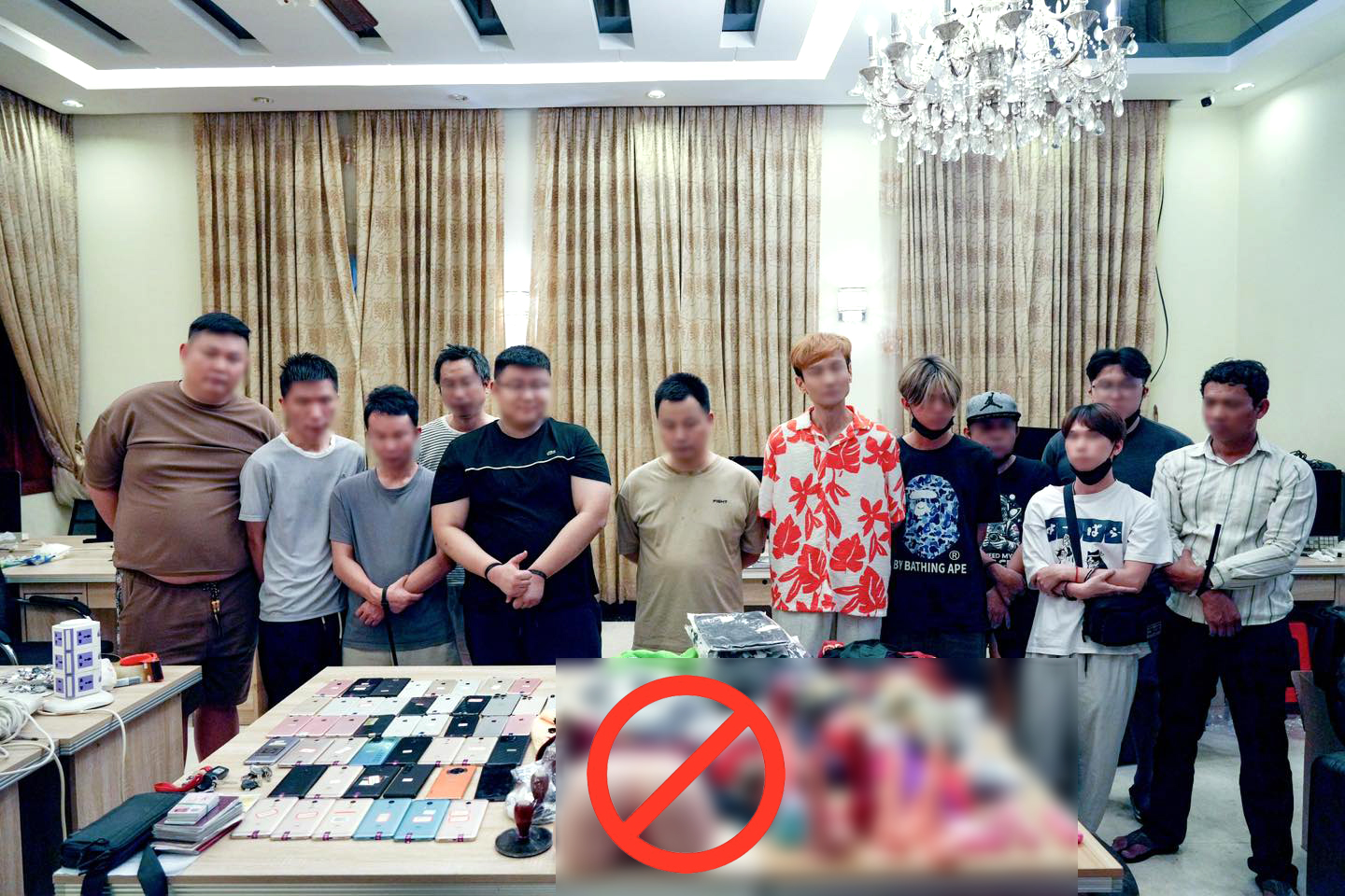 ករណីខាងលើនេះ ត្រូវបានអាវុធហត្ថរាជធានីភ្នំពេញ ធ្វើការឆ្មក់បង្ក្រាប កាលពីថ្ងៃទី០៤ ខែមិថុនា ឆ្នាំ២០២៥ ដោយមានការបញ្ជាផ្ទាល់ពី លោកឧត្តមសេនីយ៍ឯក រ័ត្ន ស្រ៊ាង មេបញ្ជាការរង កងរាជអាវុធហត្ថលើផ្ទៃប្រទេស មេបញ្ជាការ កងរាជអាវុធហត្ថរាជធានីភ្នំពេញ ក្រោមការសម្របសម្រួលពី លោក សេង ម៉េងស្រ៊ុន ព្រះរាជអាជ្ញារង នៃអយ្យការអមសាលាដំបូងរាជធានីភ្នំពេញ ដោយឃាត់ខ្លួនជាក់ស្ដែង បានជនសង្ស័យសរុបចំនួន ១២នាក់ ក្នុងនោះមាន ជនជាតិចិនចំនួន ០៦នាក់, ជនជាតិខ្មែរ ចំនួន ០៥នាក់ និងជនជាតិម៉ាឡេស៊ី ចំនួន ០១នាក់ ព្រមទាំងដកហូតវត្ថុតាងពាក់ព័ន្ធមួយចំនួនរួមមាន កុំព្យូទ័រ លិ.ង្គ និងយោ.នីសិប្បនិមិត្ត ឧបករណ៍សិ.ច ស្រោមអនាម័យ របាំងមុខទុកថតរឿងសិ.ច រួមនឹងសម្ភារៈជាច្រើនទៀត ផងដែរ៕